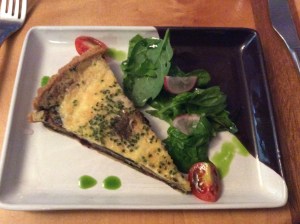 This slice of quiche and modest salad garnish may look uncomplicated, but its apparent simplicity is deceiving. The pastry base – and it was really good pastry – held fine slices of roasted summer vegetables: red pepper, aubergine and courgette. The vegetables were meltingly soft and sweetly flavoured and these alone would have made an excellent filling. The addition of a thin layer of pesto lining the pastry base along with a rich savoury custard topping elevated this dish into something truly outstanding.
