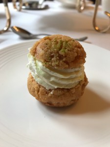 First, a little light-as-a-puff-of-air choux bun with a crispy, crackled topping. ( Is this the pastry which is termed “Choux au Craquelin”? I really ought to have asked!)