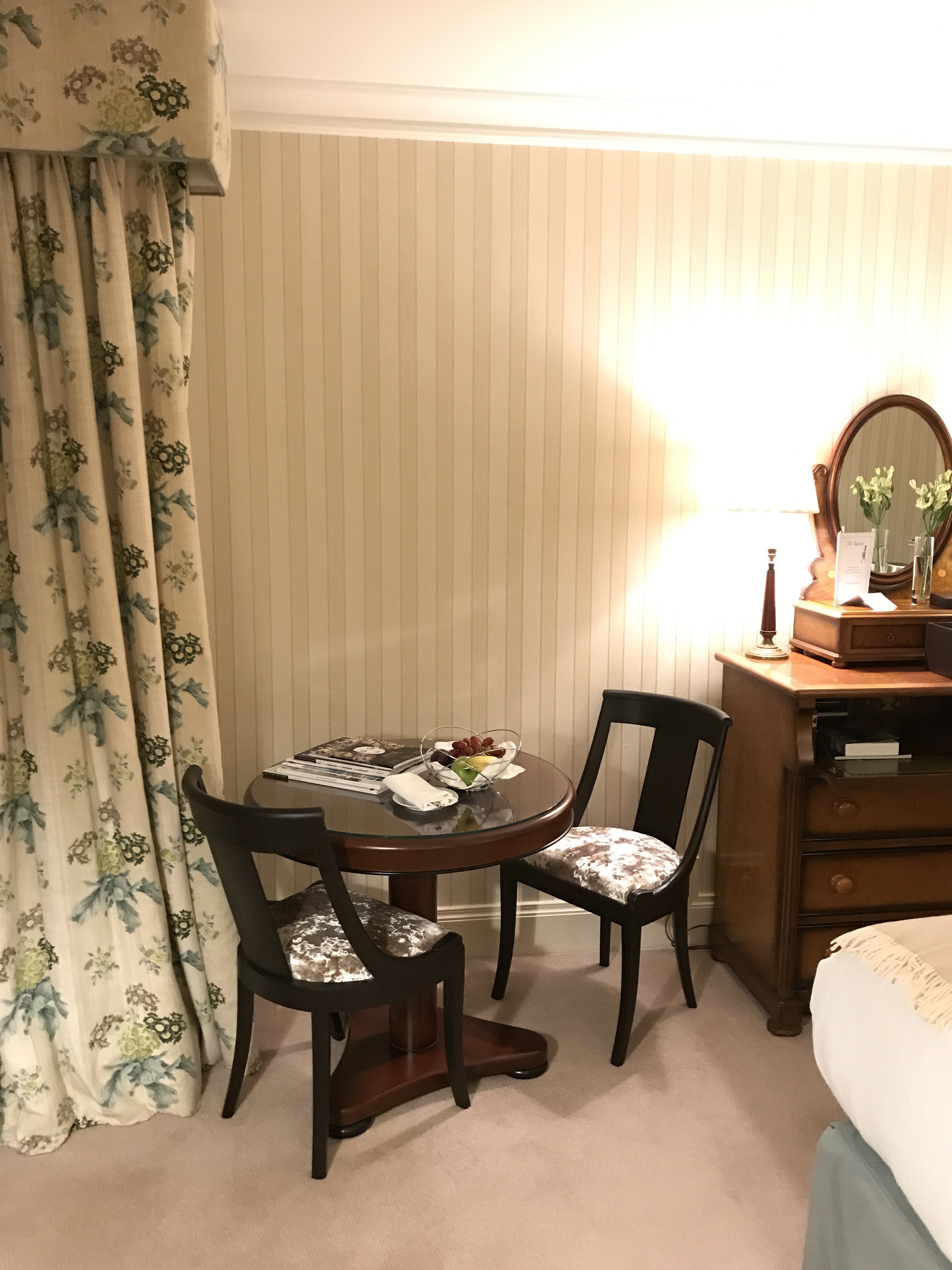 After a restful night in a Savoir bed in a quiet room I awoke to the sounds of London coming to life. My room was at the rear of the hotel so there wasn’t an issue with the sound of passing traffic but the emergence of beeping, rattling shutters and, occasionally, the sound of voices rising from the rear courtyard area began to interrupt my peace as the day dawned. The glazing and heavy brocade curtains were doing a good job of muffling the sounds but they couldn’t be expected to bring about about silence in the centre of a bustling capital city. I looked around the room in the dim light and for a moment the scene reminded me of nights I’d stayed – many years ago – in a country mansion. The decor, furnishings and artworks had the look of an English country house with their understated quality, avoiding a showy or ostentatious look.
