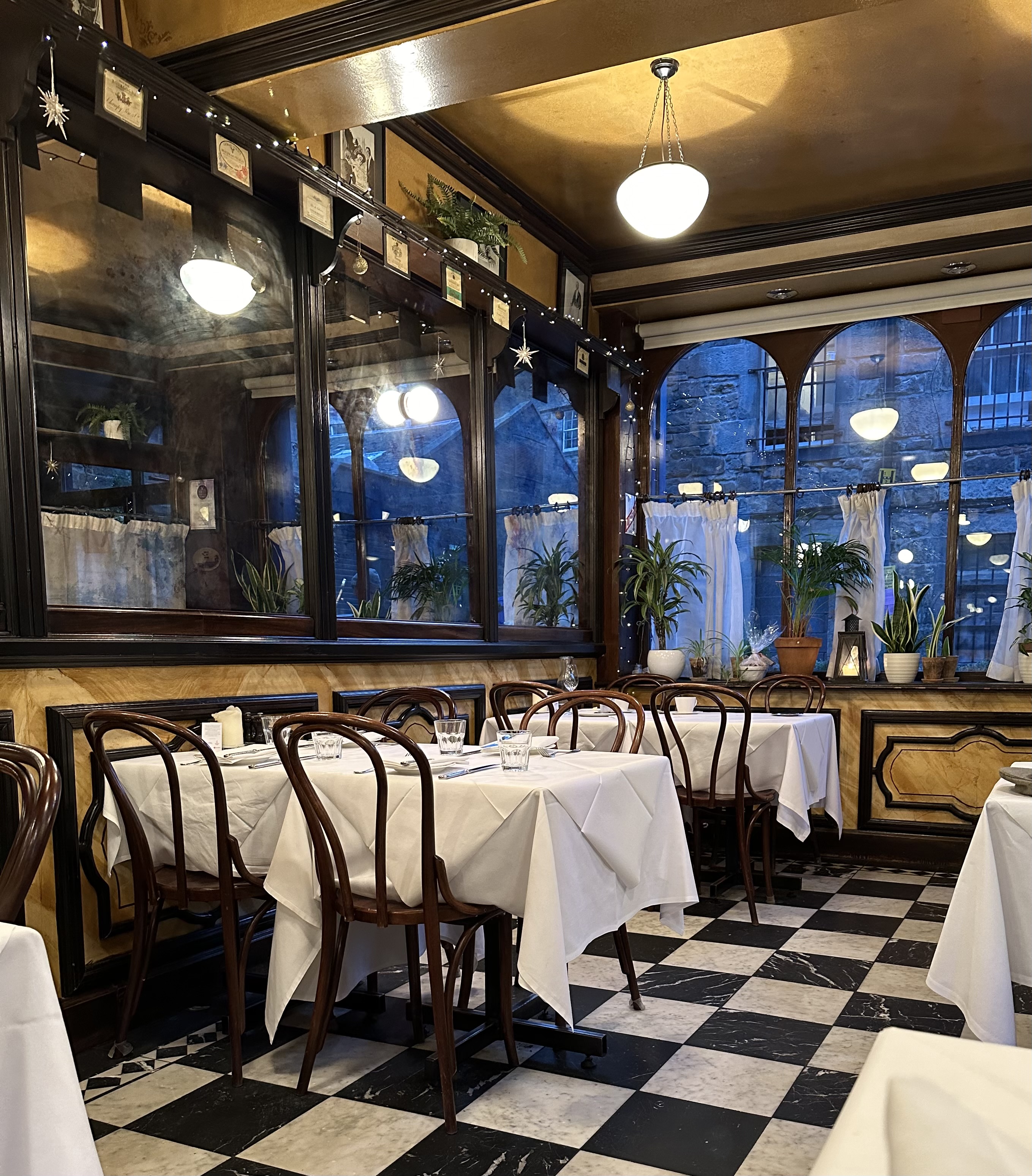 Café St Honoré is located – to quote their website – “Hidden down a cobbled lane”. Don’t be deterred from finding it. It is a ten to fifteen minute walk from Edinburgh’s Waverley Railway Station. It’s in one of those roads which runs parallel to Princes Street in Edinburgh’s New Town.