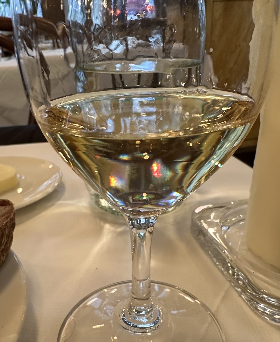 Before my first course arrived, I’d asked to be served a glass of chilled vermouth as an aperitif. It seemed a good way of setting the scene for a meal in this gallic-themed environment. The drink, however, was not from France. This vermouth – Wermod – was produced only a few miles from where I was seated. What a discovery it proved to be. It has a crisp, clean, floral flavour and a complexity which emerges gradually. (I’ll leave the description of the drink and its Scottish producers there as I feel it merits a review in its own right!)
